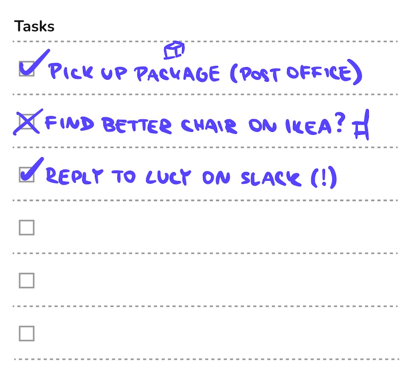 Use this space to plan any task beyond your MIW (Most Important Work). Or deconstruct your MIW into smaller steps you can check off as you make progress.
