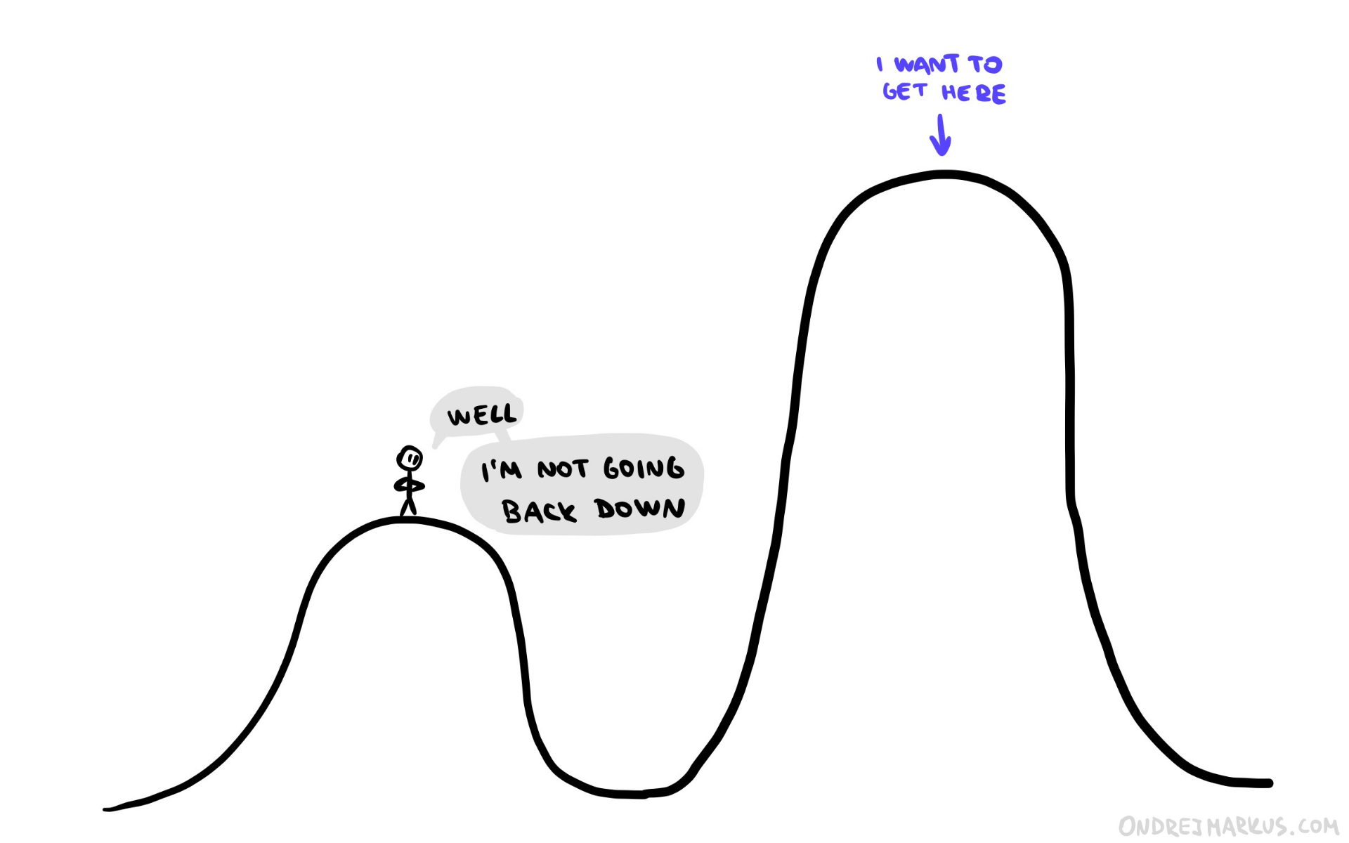 But o-ou. Because the environment shifts constantly with new trends and technology, there’s suddenly a much higher hill right next to you.