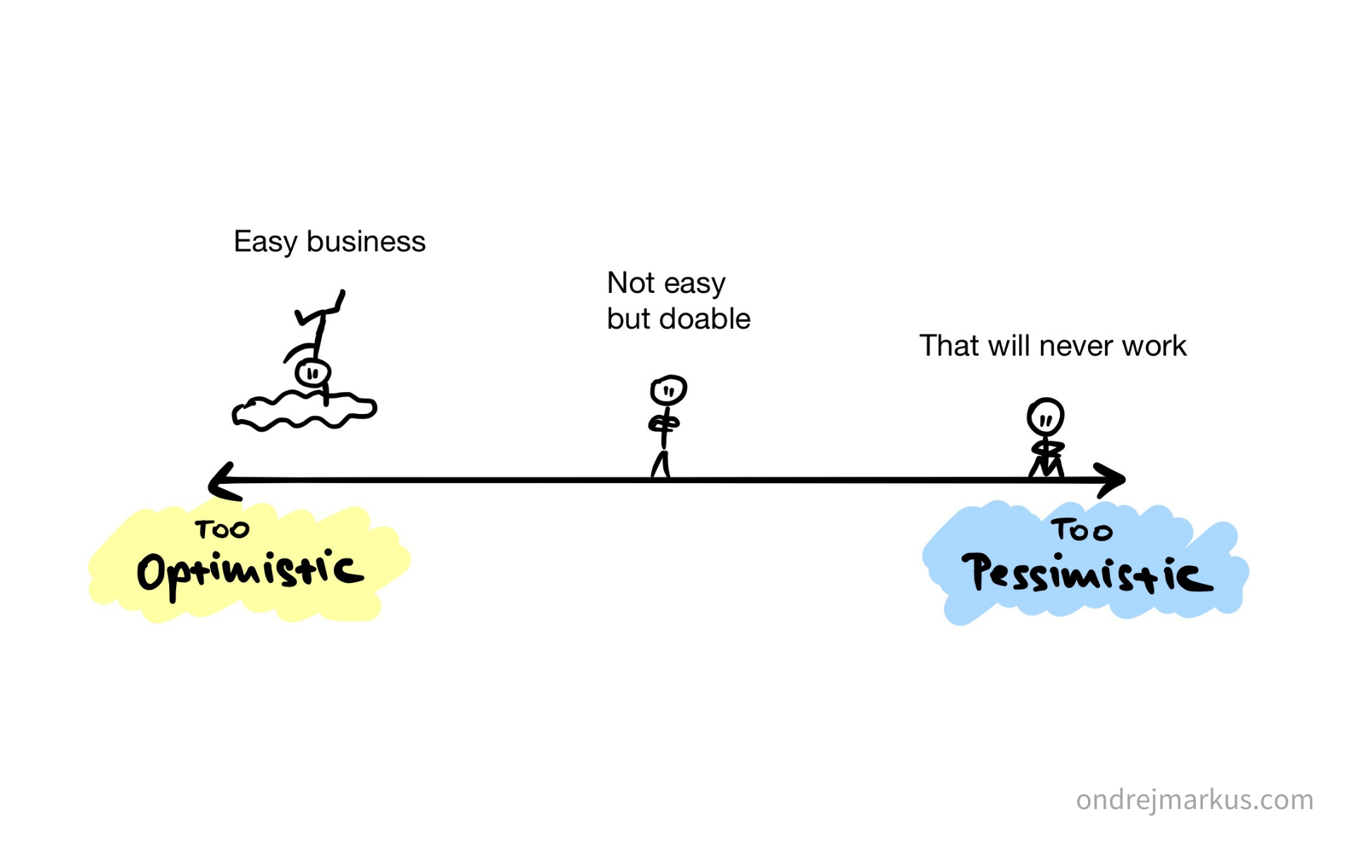 The goal of this exercise is to make sure we know about things that could go wrong and think about how we would fix them if necessary. All of us tend to be more optimistic or pessimistic than we should be. So we want to calibrate ourselves to a realistic mindset. Not to underestimate the impact of our choices, but also not to be unreasonable and scared of easily fixable changes that probably won’t even happen.