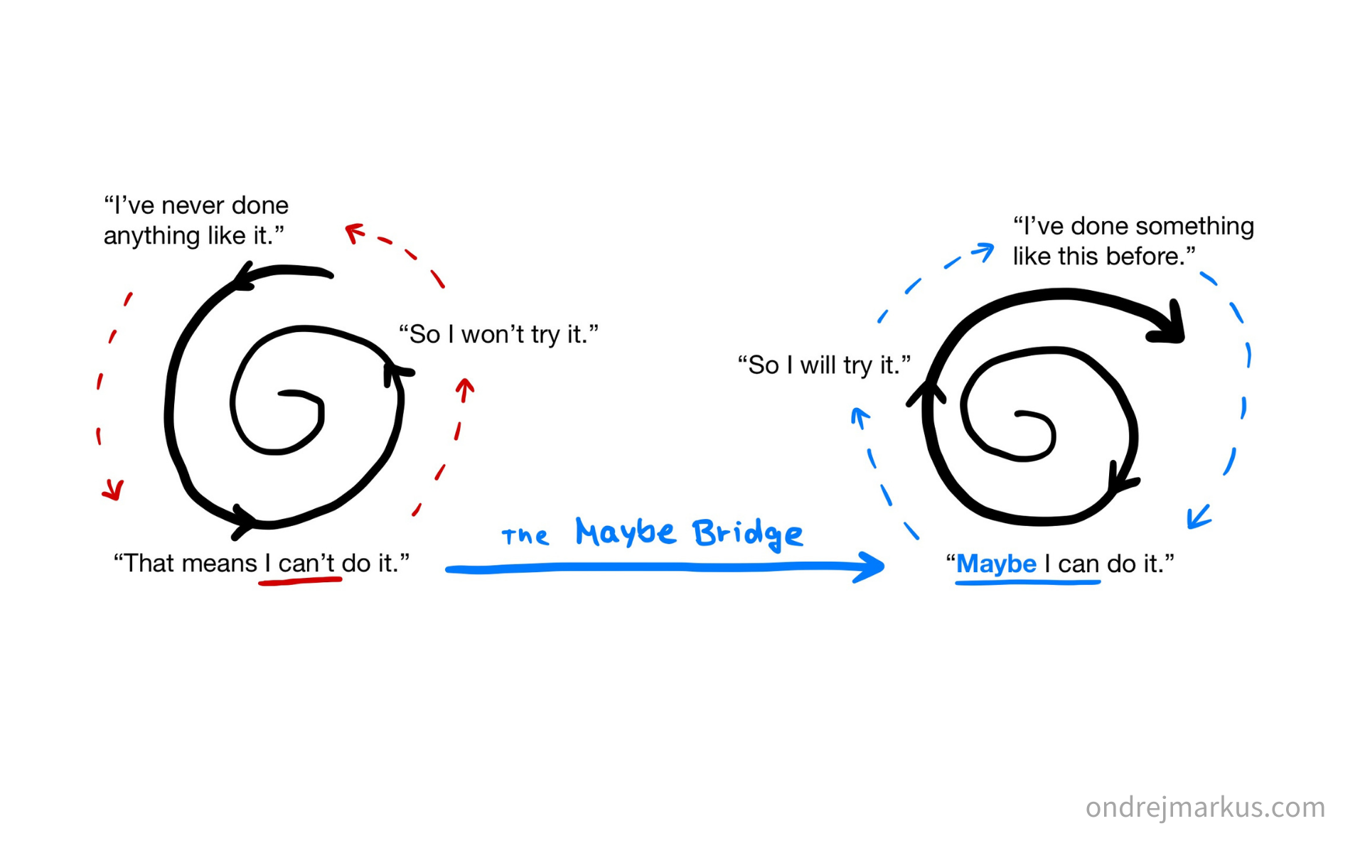 The Maybe bridge is a mindset, in which you can create proof of your abilities for yourself – evidence of your competence – before you feel ready. And yes, from time to time, you won’t meet your expectations of success, but it doesn’t matter. Once you discover the Maybe bridge and learn to use it, you can do anything.